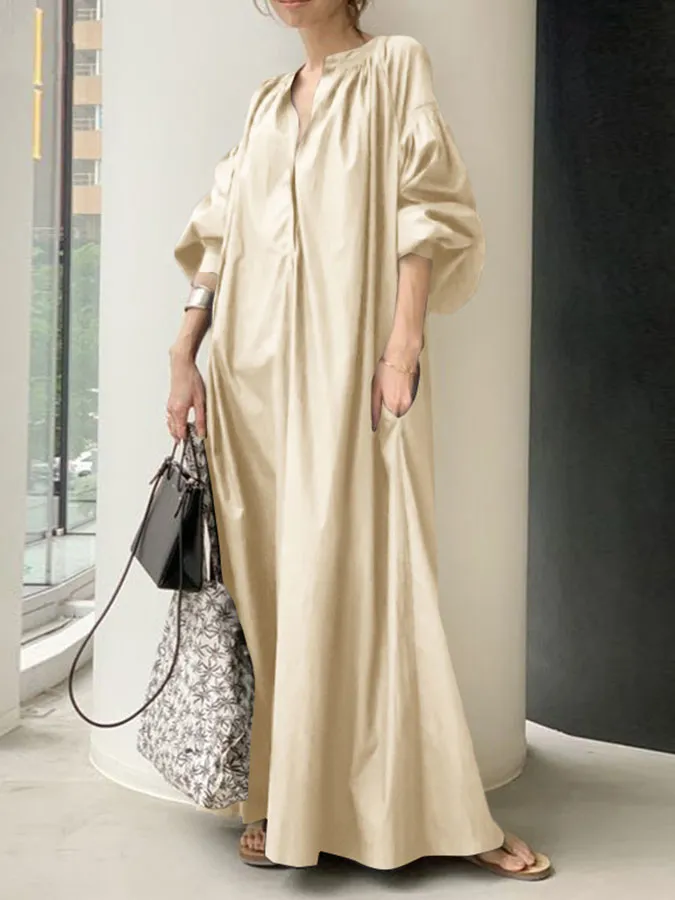Casual Solid Color Balloon Sleeve Dress