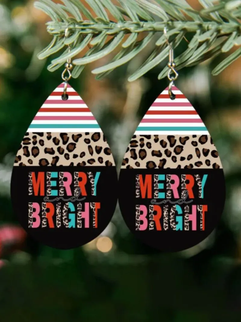 Christmas Merry&Bright Leopard Print PU Drop Earrings