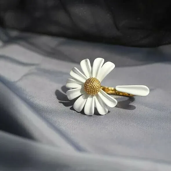 Bague Élégante Vintage Fleur De Marguerite En Émail Blanc