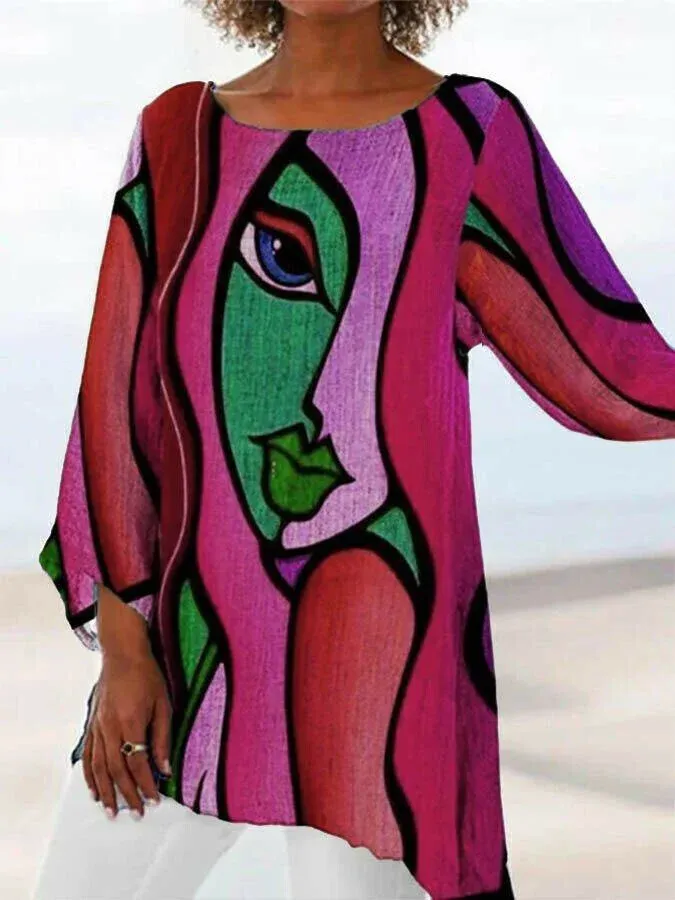 Haut à imprimé visage abstrait irrégulier