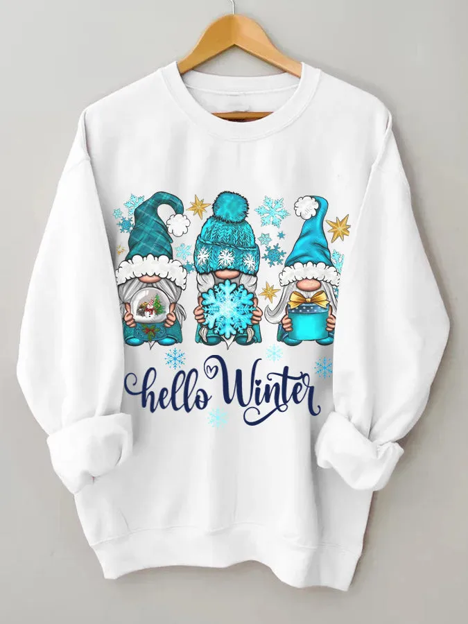 Hello Winter Gnome Print Crew Neck Shirt