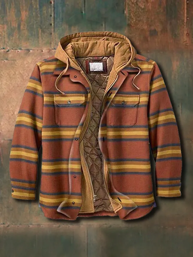 Men's Striped Padded Padded Hooded Jacket