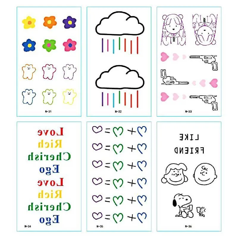 TTDeye Rainbow Rain 30 Piece Tattoo Stickers