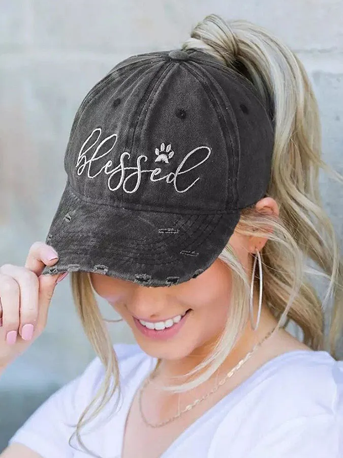 Statement Embroidered Ripped Cap