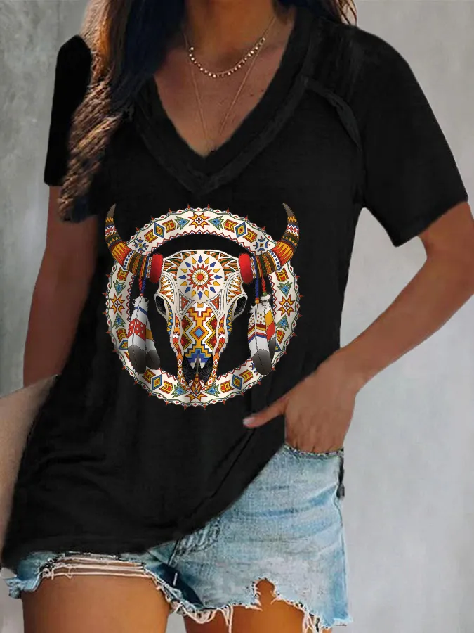 🔥Buy 3 Get 10% Off🔥V-Neck Geometry Print T-Shirt