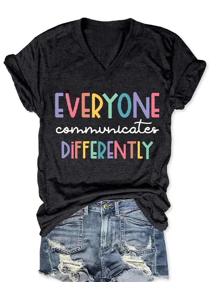 V-Neck Letter T-Shirt