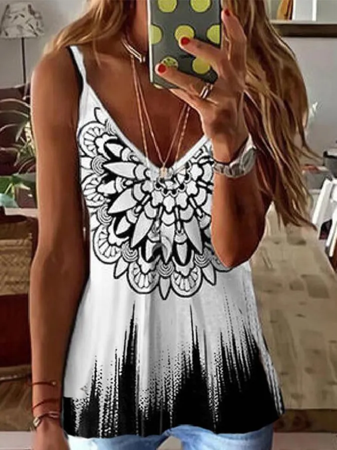 V-Neck Vintage Print Slip Top