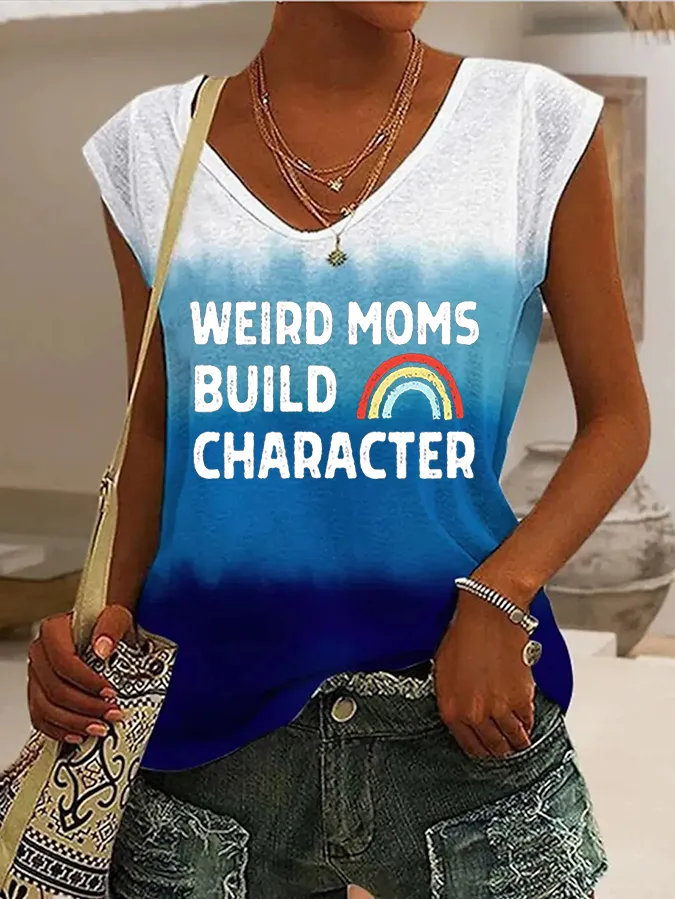 WEIRD MOMS Gradient Print Casual T-Shirt