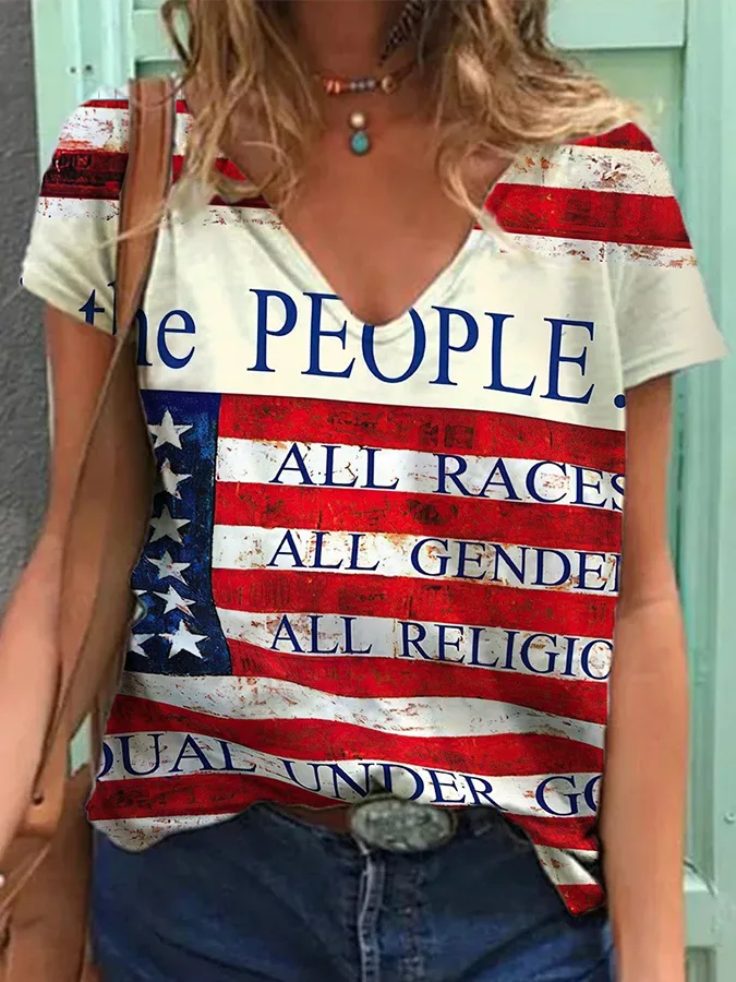 🔥Buy 3 Get 10% Off🔥Women's American Flag Print V-Neck Tee
