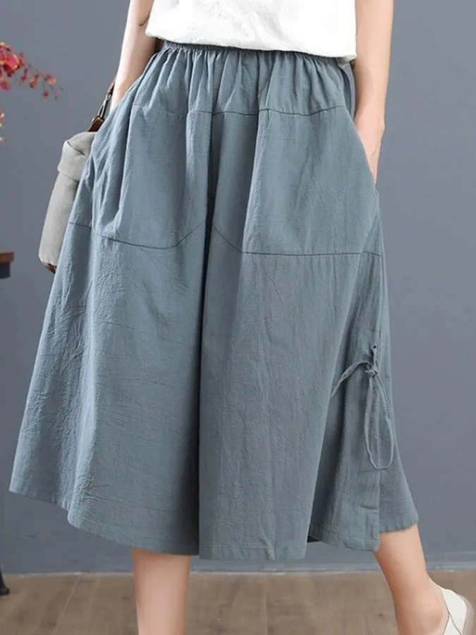Women's Casual Solid Cotton Linen Wide Leg Pants