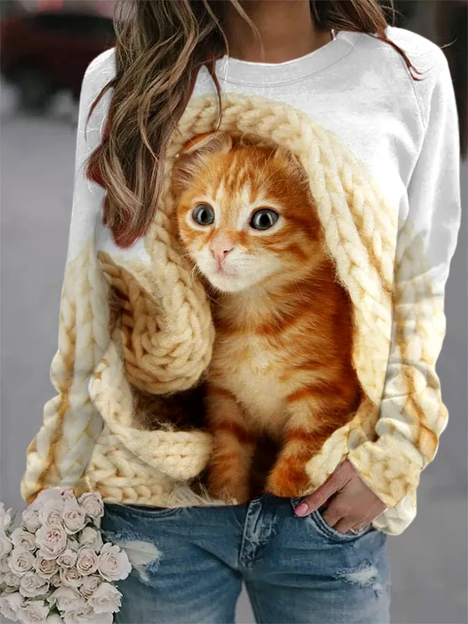 Women's Cat Print Long Sleeve Top