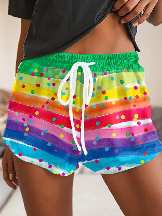 Women's Rainbow Polka Dot Print Shorts